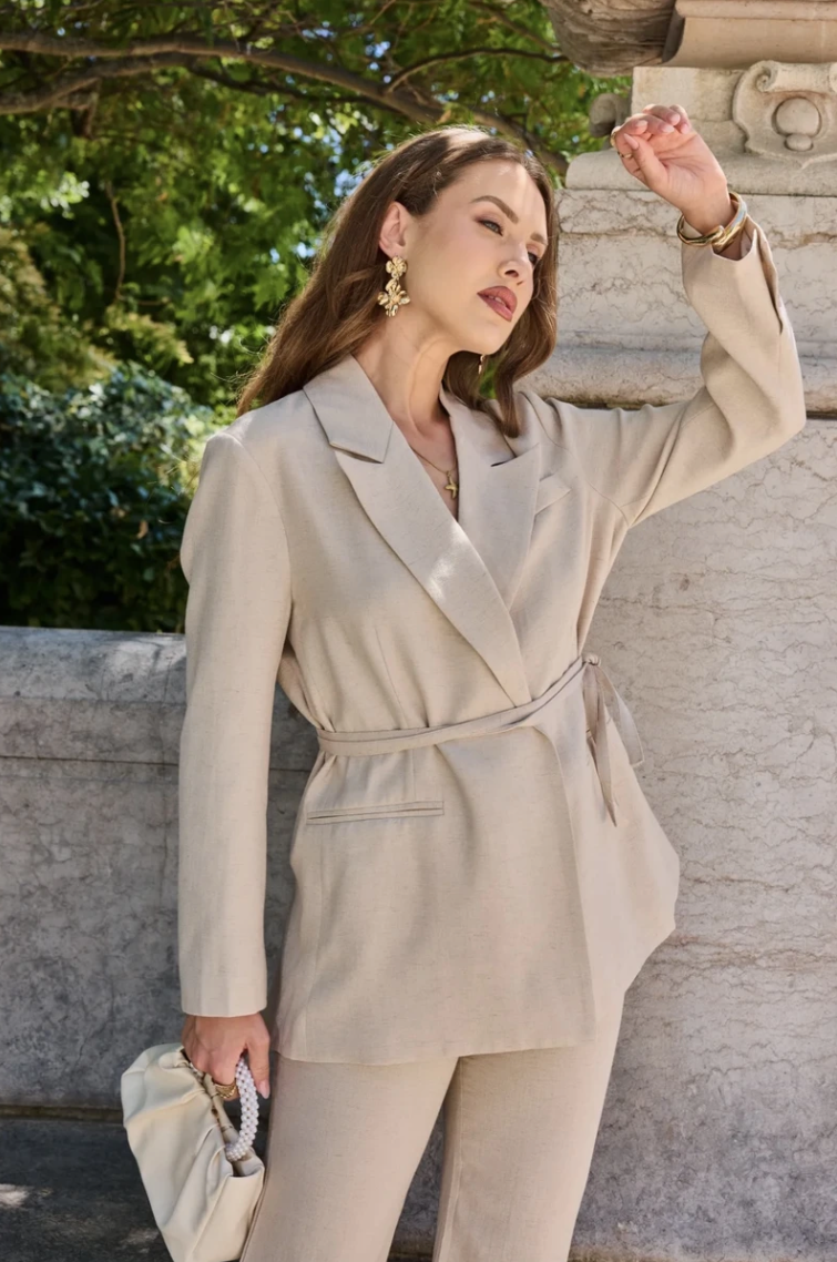 Frime Elegant Long Blazer with Tie Waist
