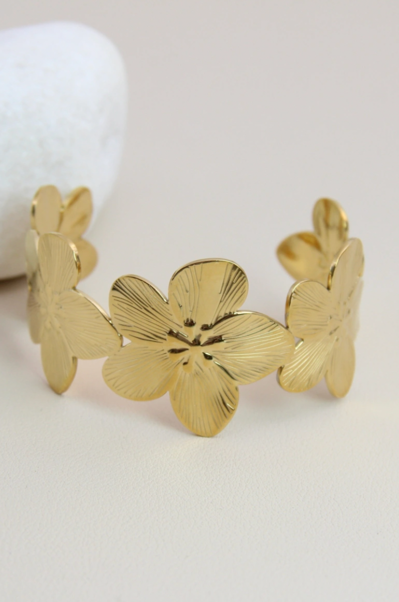 Adjustable Flower Bangle Bracelet in Stainless Steel