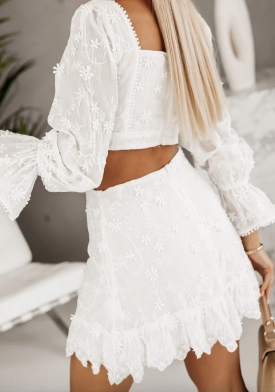 Lily McBee White Embroidered Two-Piece Set