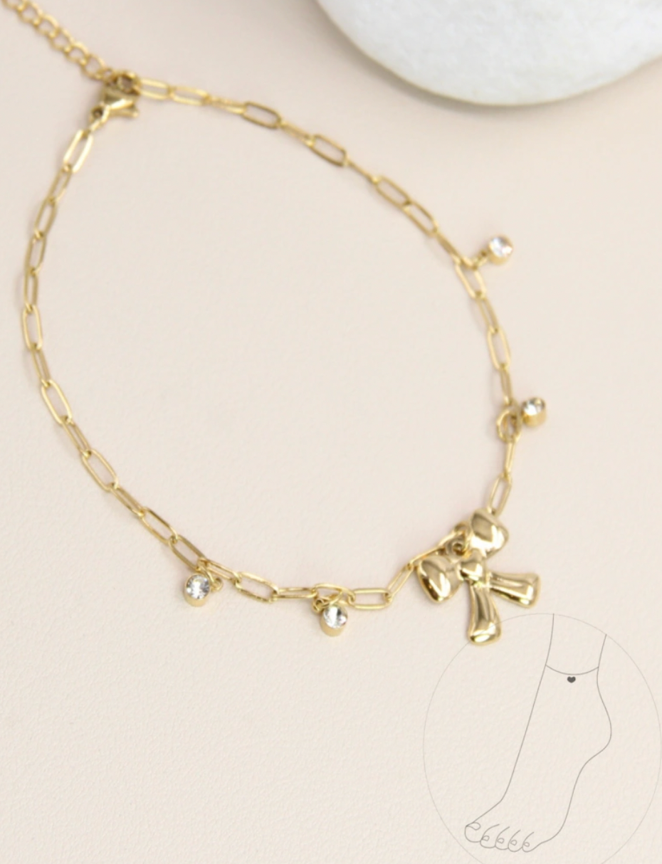 Ge dina fötter en feminin och stilren detalj med denna fina ankelkedja i mesh, dekorerad med ett nätt rosettsknutehänge i rostfritt stål. Smycket är vattenresistent, nickelfritt och missfärgas inte, vilket gör det perfekt för både stranddagar och somriga utekvällar. Ett vackert och bekvämt tillbehör som passar alla stilar.