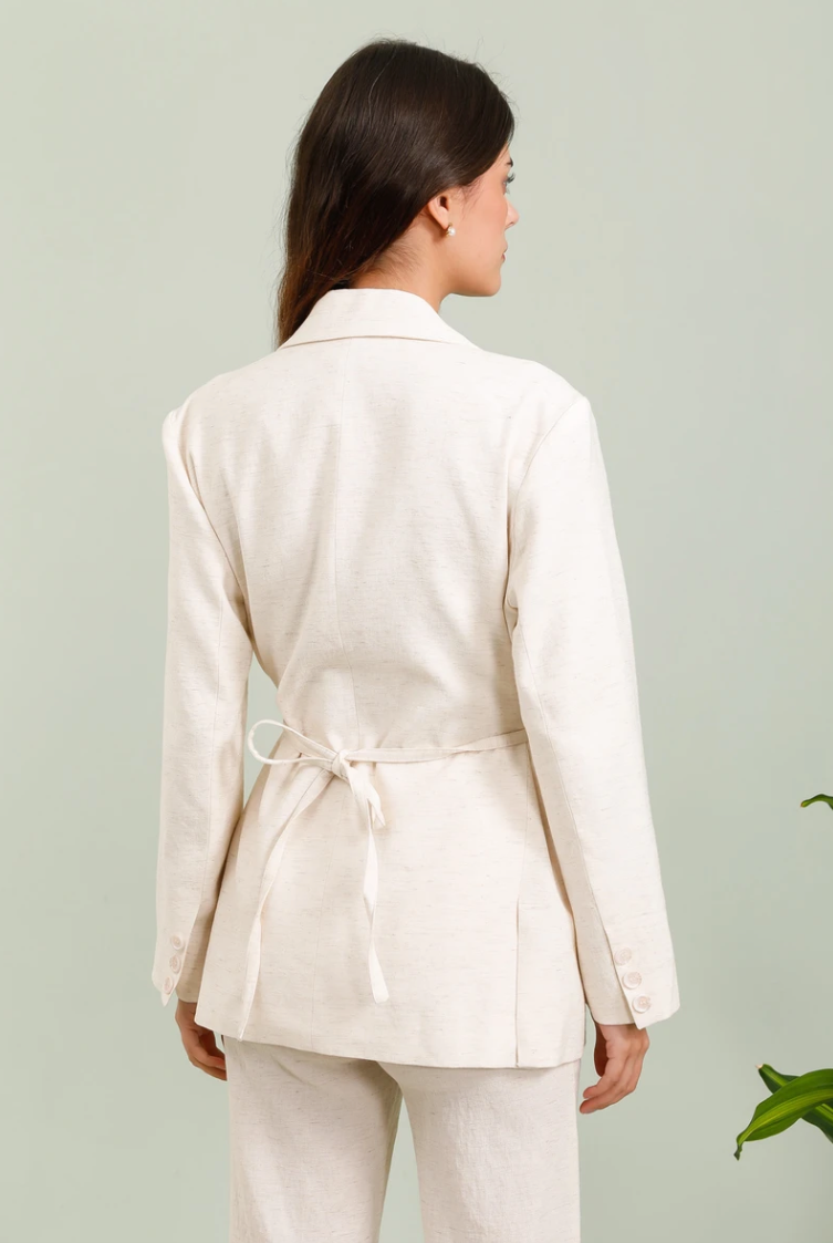 Frime Elegant Long Blazer with Tie Waist